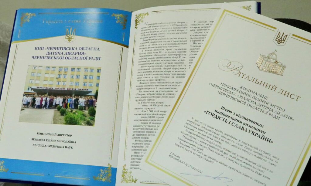 Приємним моментом свята було вручення колективу Чернігівської обласної дитячої лікарні національної відзнаки «Гордість і слава України»!
